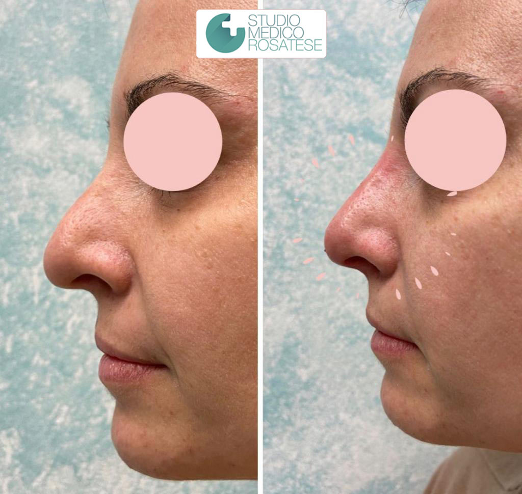 È una procedura mirata a migliorare l’aspetto del naso senza la necessità di un intervento chirurgico. Questa procedura utilizza un filler a base di acido ialuronico per correggere l’imperfezione del naso (ad es. la gobba) ed ottenere un profilo più armonioso. Essendo un trattamento non invasivo ha un recupero immediato rispetto ad una rinoplastica chirurgica tradizionale.